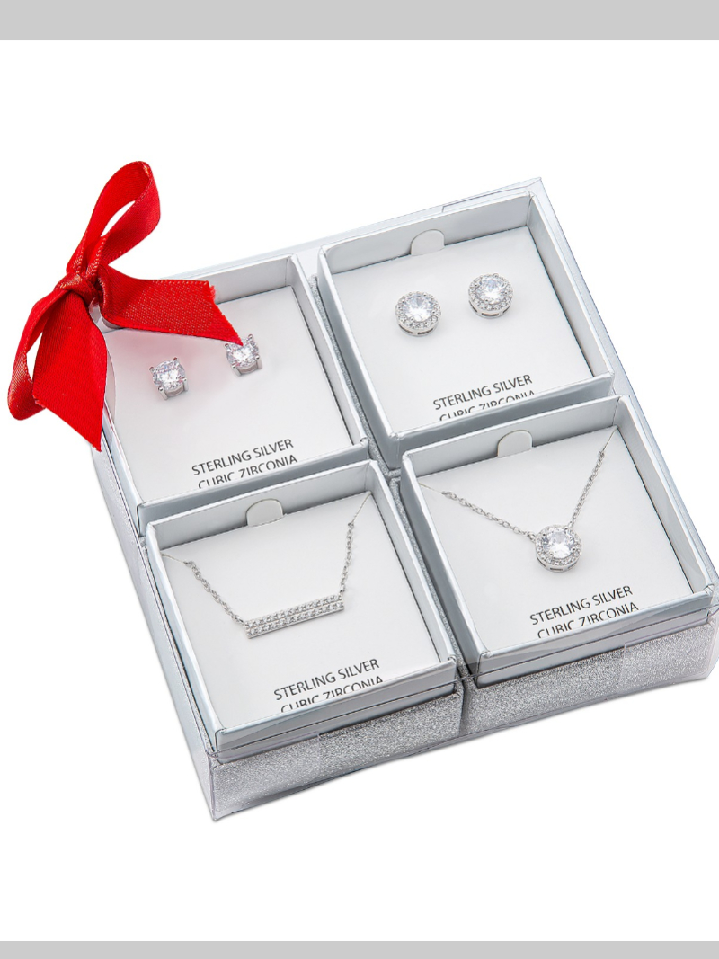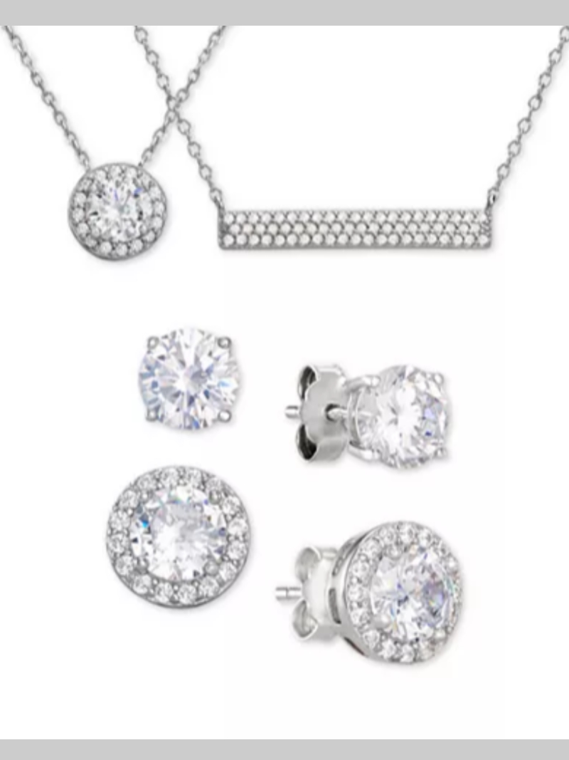Re-imagine your look in an instant with the fabulous cubic zirconia pendant necklaces and stud earrings in this gorgeous four piece set from Giani Bernini.