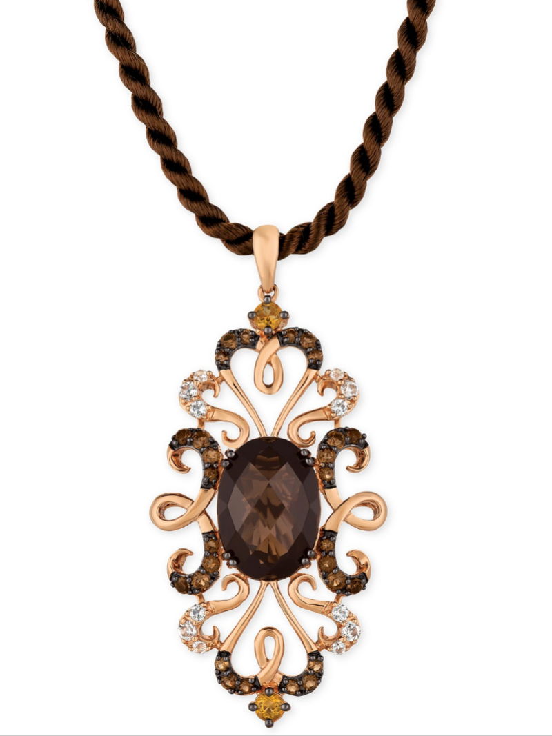 Imbibe your senses with the vintage-inspired elegance of this Le Vian silk cord pendant necklace created in 14k rose gold with beautiful gemstones including oval-and