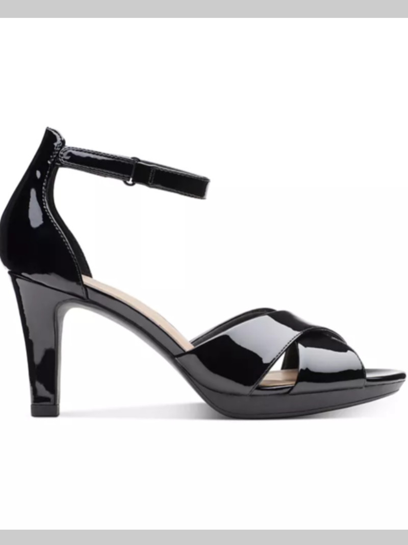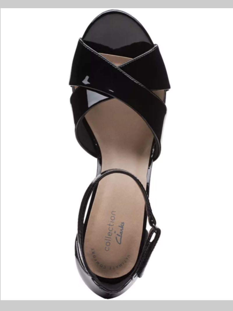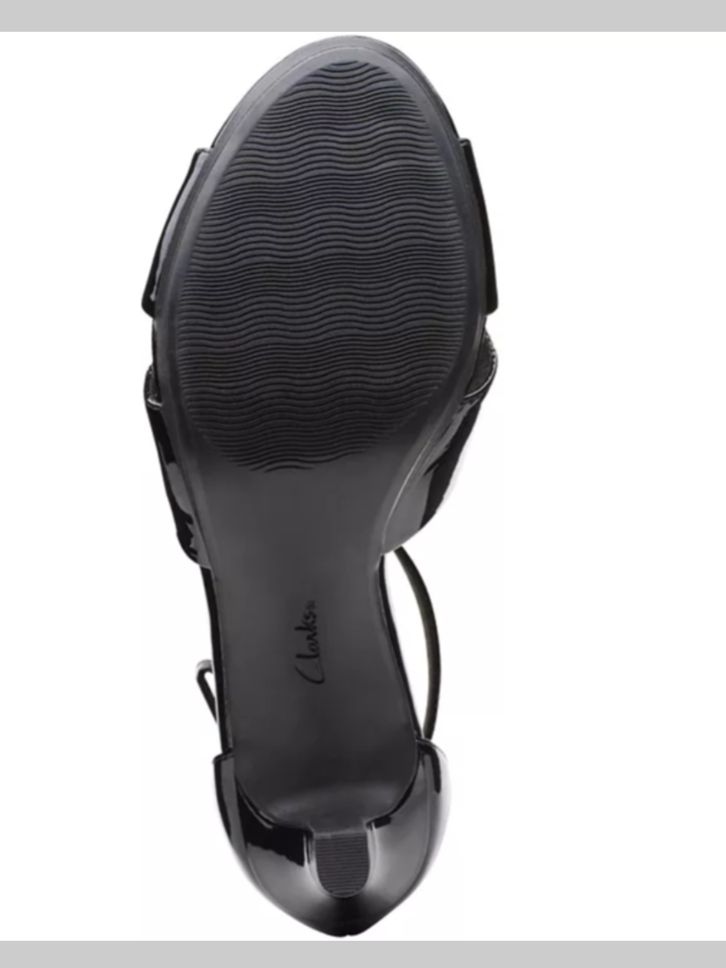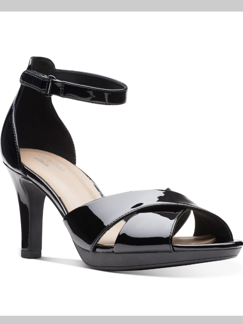Patent gloss adds sophisticated shine to dressy looks in the ultra-chic strappy silhouette of the gorgeous Adriel Cove dress sandals from Clarks Collection