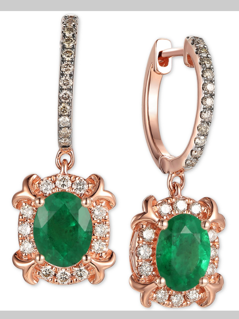 Le Vian indulges in enchantment with these beautiful drop earrings featuring oval-cut Costa Smeralda Emeralds™ wrapped in Nude Diamonds™ suspended from hoops laden with rich Chocolate Diamonds®.