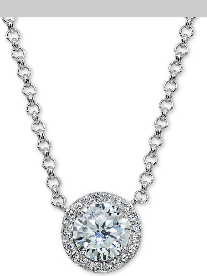 Cubic Zirconia Halo Pendant Necklace in Sterling Silver, 16" + 2" extender