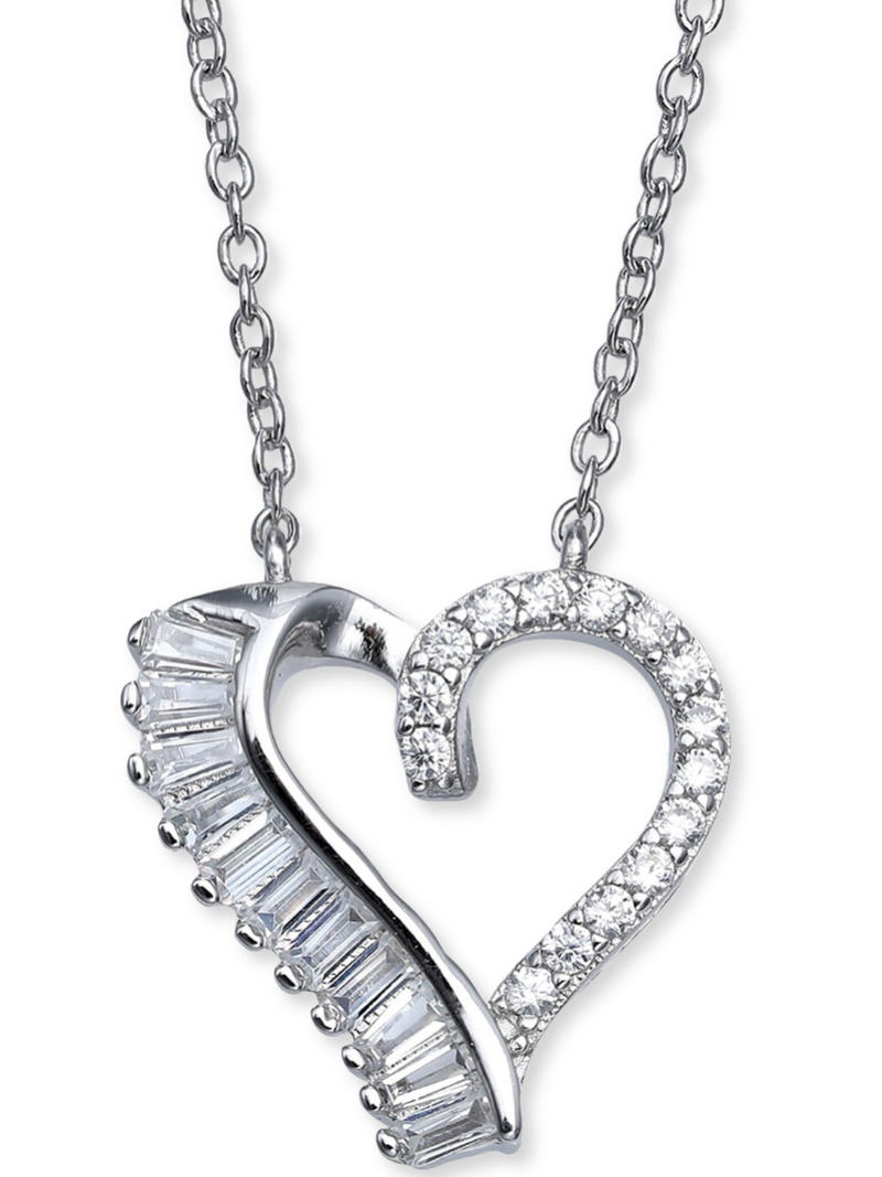 Cubic Zirconia Open Heart 18" Pendant Necklace in Sterling Silver