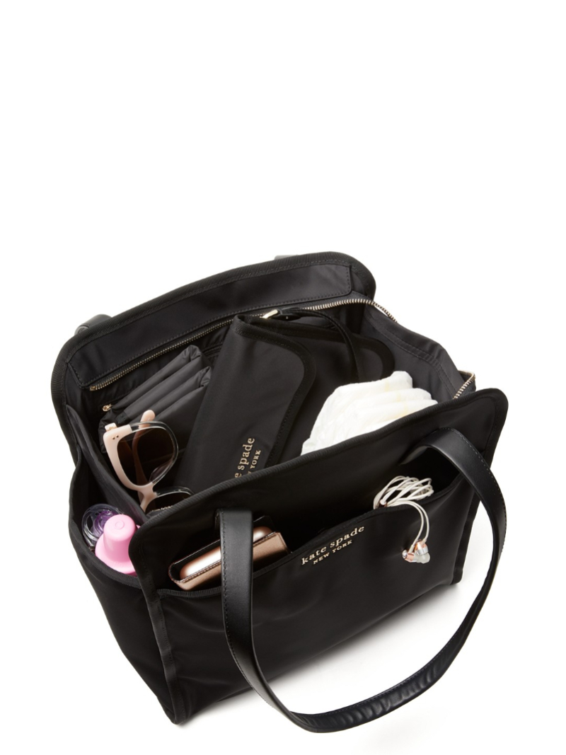 1 interior zip pocket, 3 slip pockets, removable pouch and changing mat