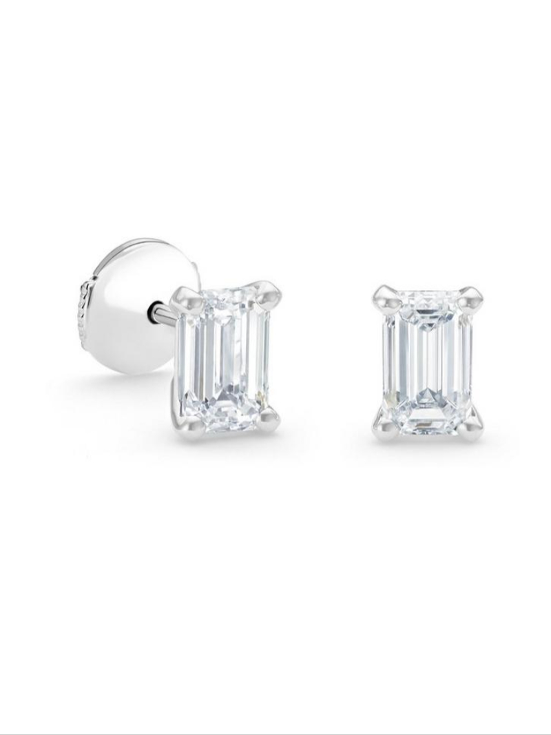 These elegant platinum diamond studs are composed around two ~0.70 carat emerald-cut diamonds, prong-set for ultimate Brilliance. For pure timeless elegance, the emerald-cut diamond appeals to lovers of both contemporary and vintage styles alike. As in every piece of De Beers jewellery, these diamonds have been ethically sourced, selected by eye and hand-set by a team of artisans.