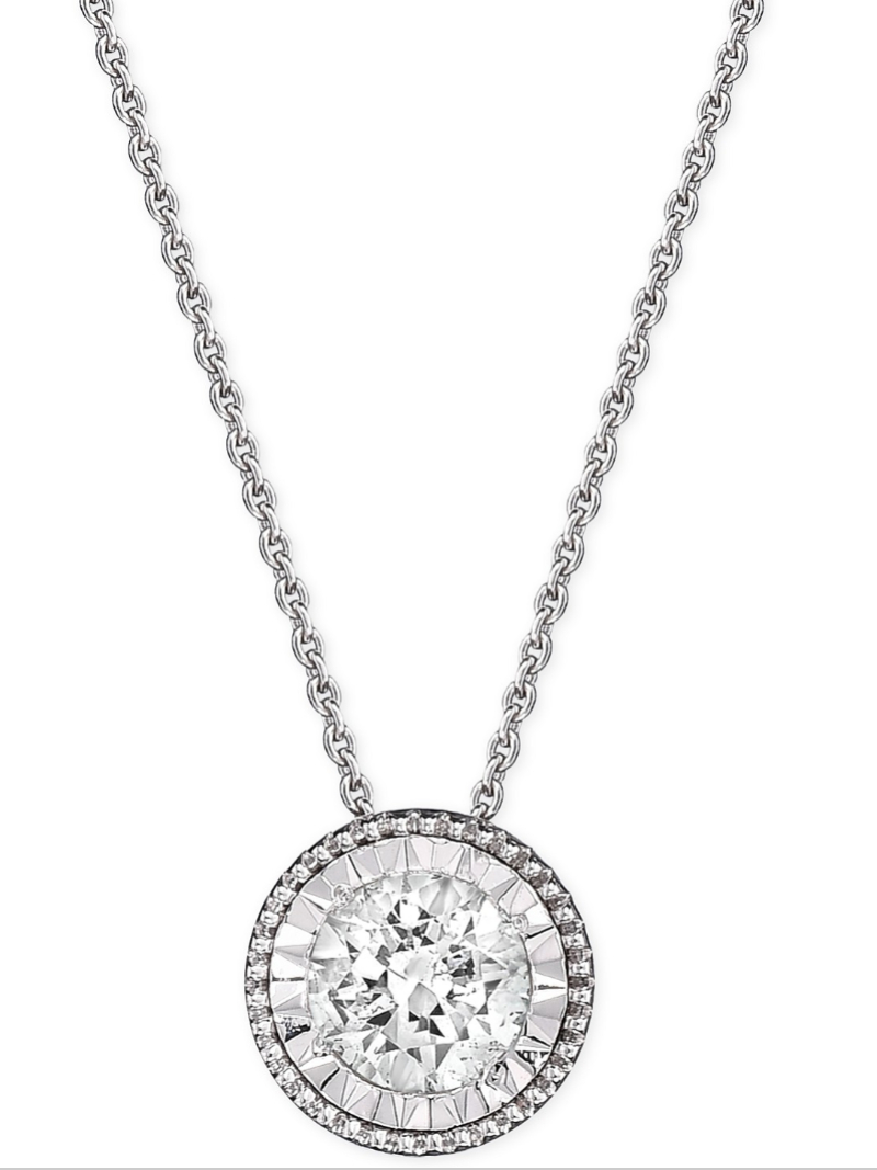 TruMiracle® creates showstopping glamour with this stunning round-shape diamond pendant necklace (1/2 ct. t.w.) set in 14k white gold. Approximate length: 18". Approximate drop: 3/8".