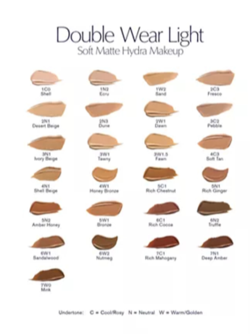 Matte has a fresh new attitude. Double Wear Light is matte re-imagined. Softly diffused. Always selfie ready. Super-long 24-hour wear. Fresh. Natural. Matte. Available in cool, neutral and warm undertones.