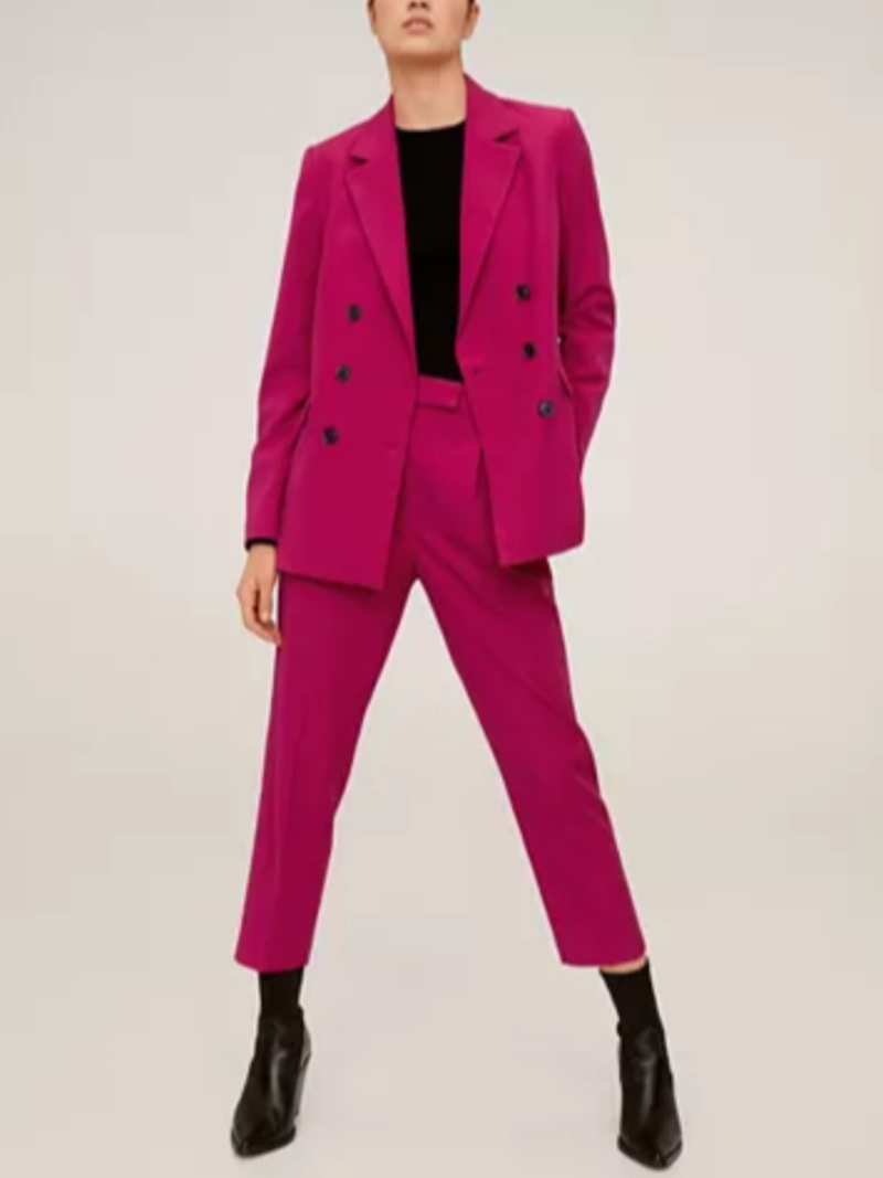This notched lapel, double-breasted blazer by Mango is a combination of utility and style for a fashionable chic look. The two pockets with flaps and long buttoned sleeves of this stunning jacket complement each other perfectly.