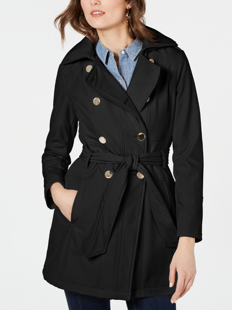 Double-Breasted Hooded Water-Resistant Trench Coat