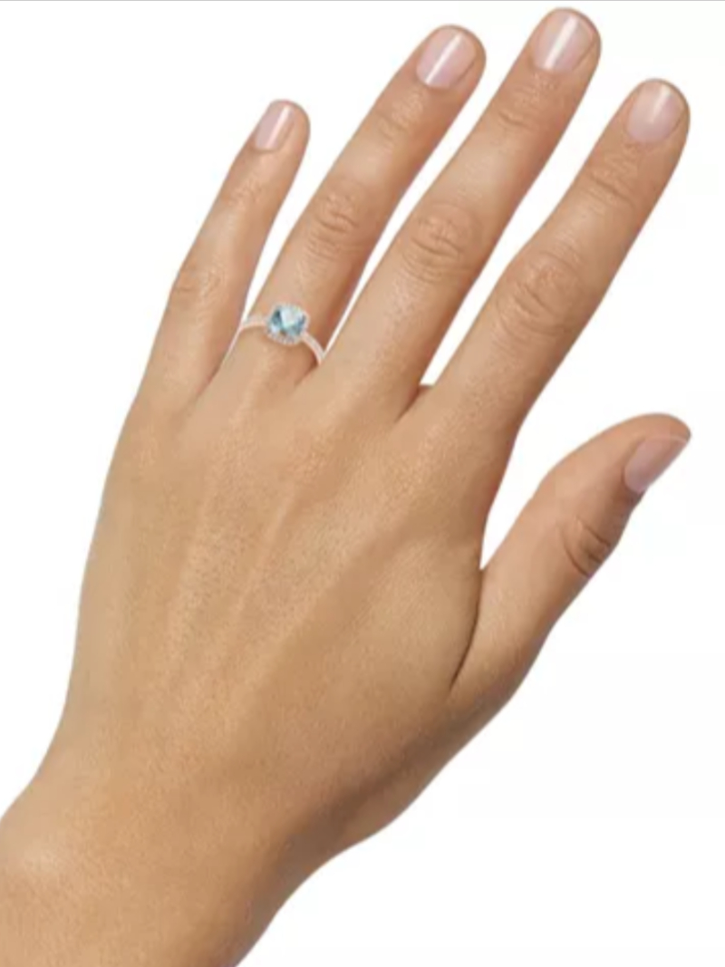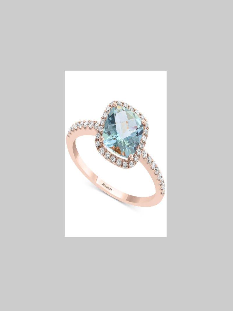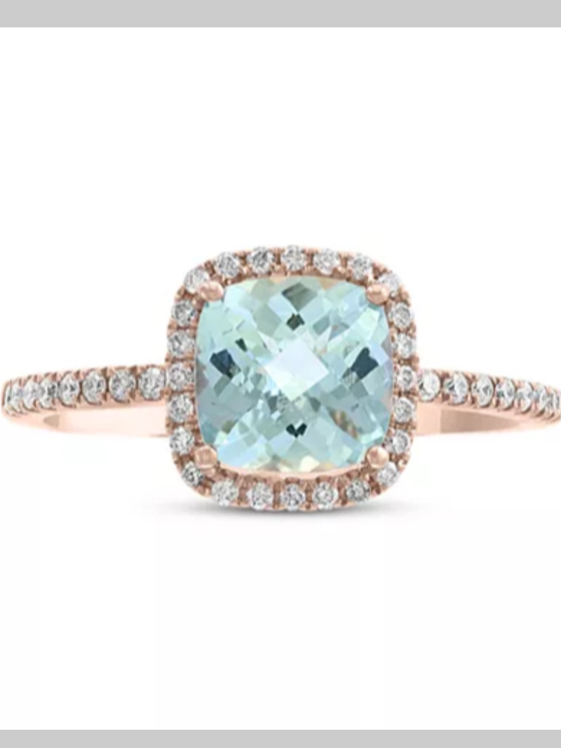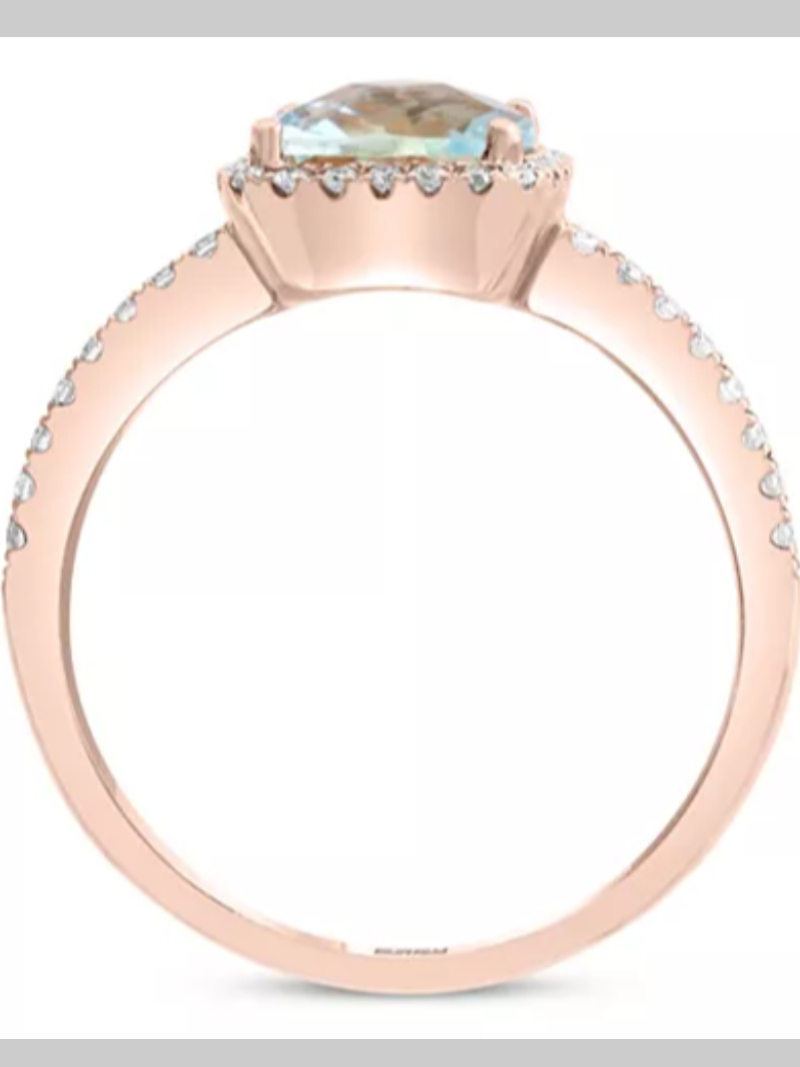 EFFY® Aquamarine (1-1/2 ct. t.w.) & Diamond (1/4 ct. t.w.) Halo Ring in 14k Rose Gold