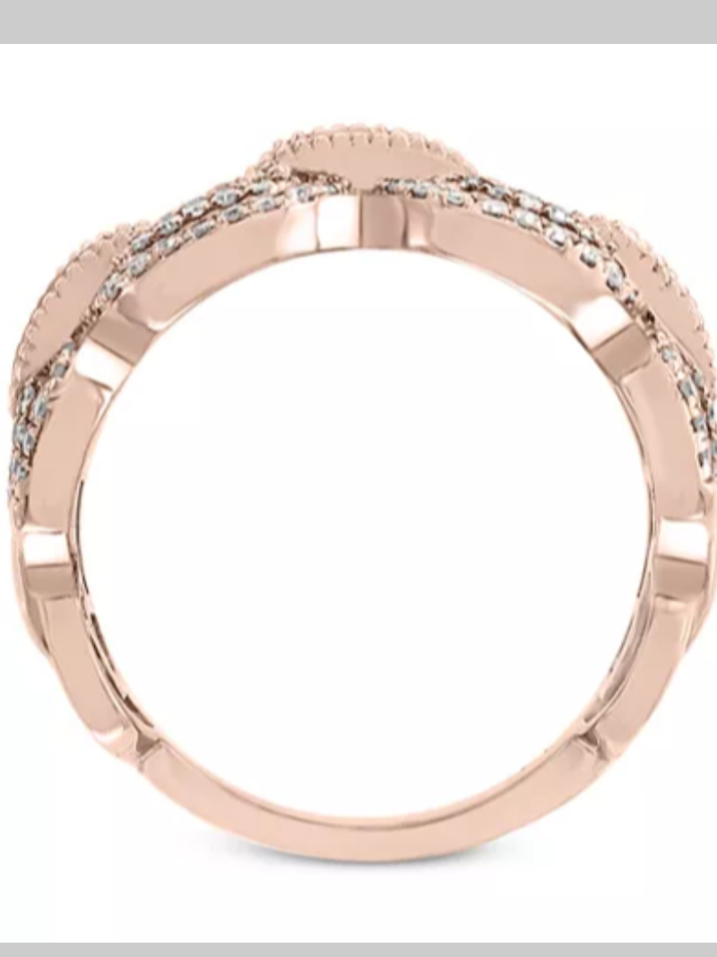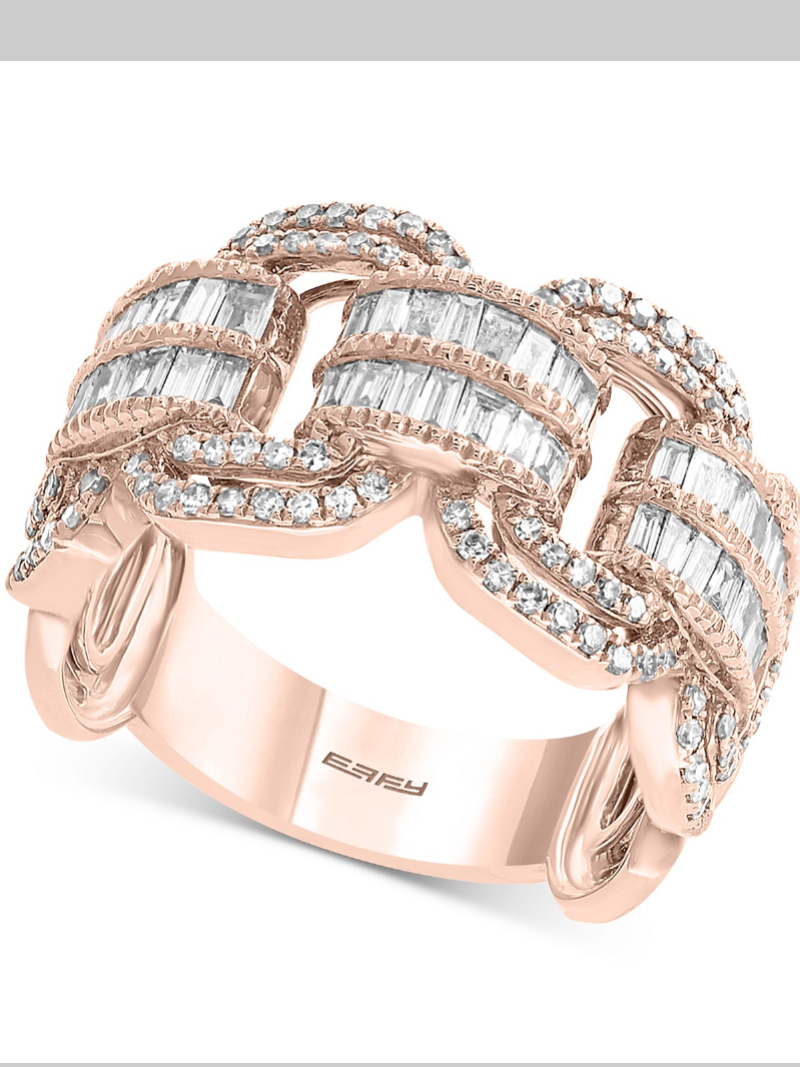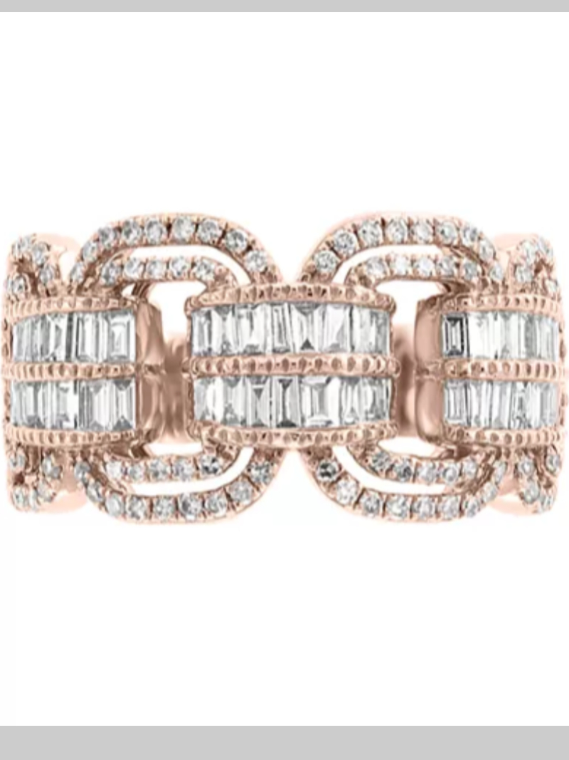 A tribute to her stellar sense of style, this contemporary statement ring (9/10 ct. t.w.) from EFFY is ablaze with the artistic and unique passions of round-shape and baguette diamonds set in fiery rose gold.