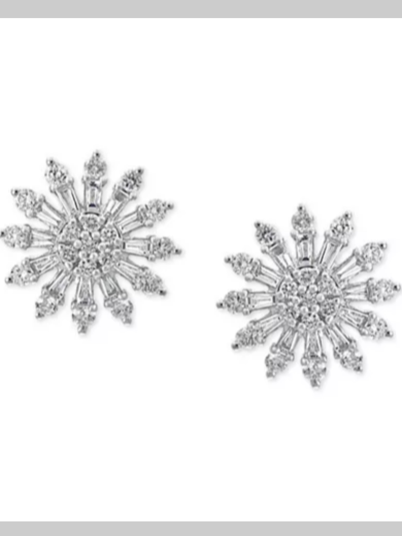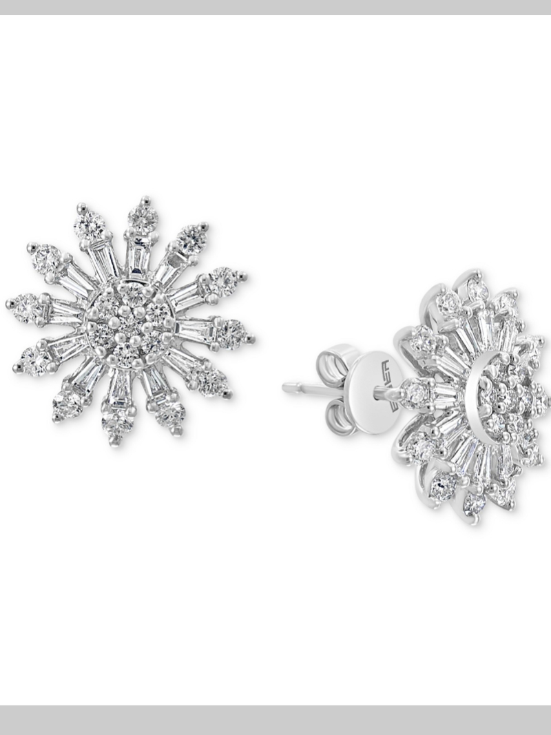 Radiating style, glamour and sparkle, these gorgeous diamond sunburst stud earrings are designed by EFFY® with a brilliant combination of round-cut and baguette diamonds.