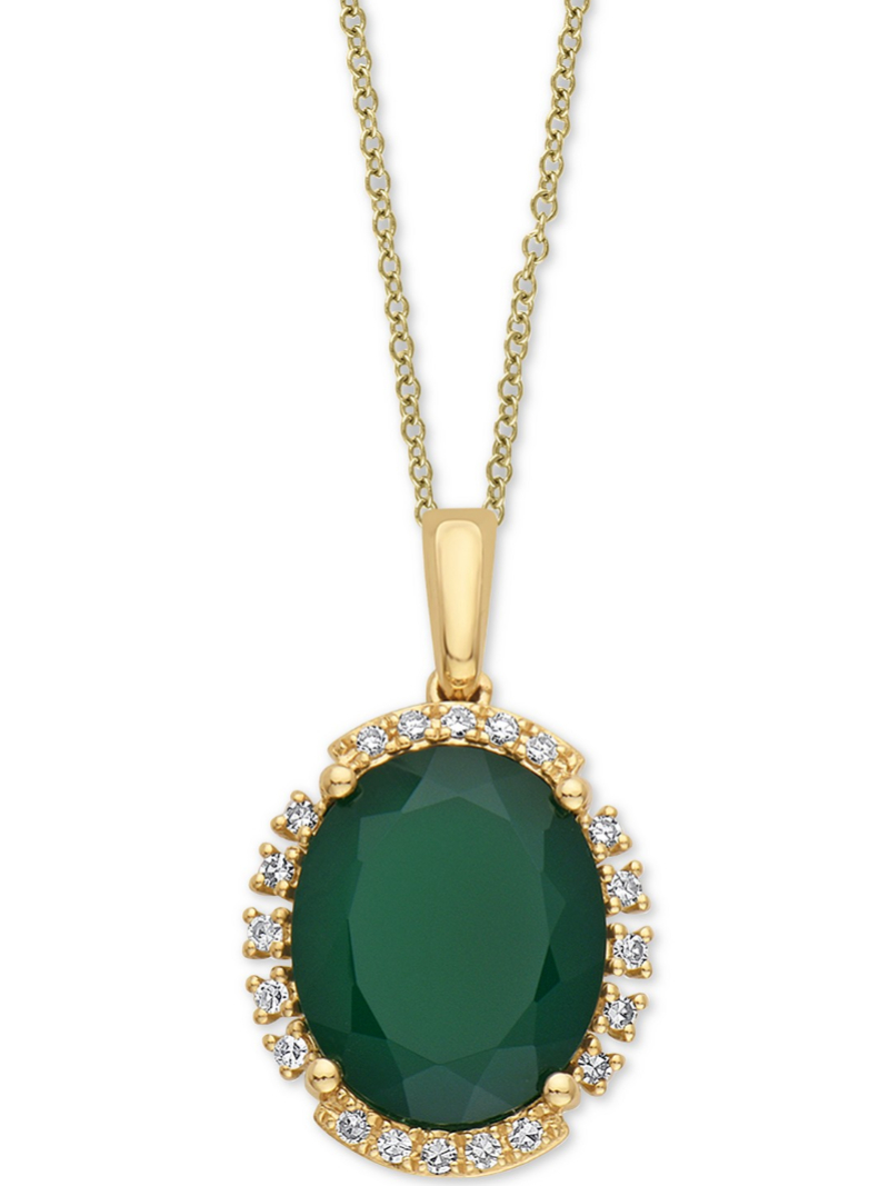 Ground your look in the earth-toned elegance of this oval-cut green onyx pendant necklace framed by shimmery diamonds - from EFFY®.