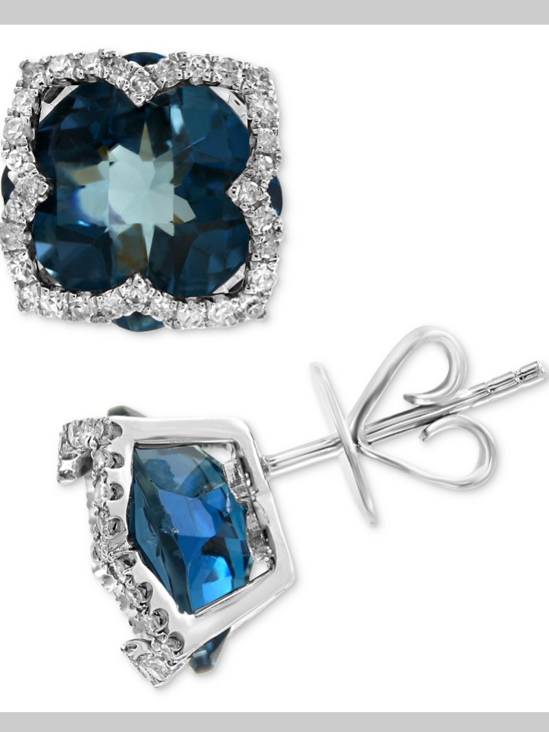 EFFY® London Blue Topaz (8-1/5 ct. t.w.) & Diamond (1/3 ct. t.w.) Stud Earrings in 14k White Gold