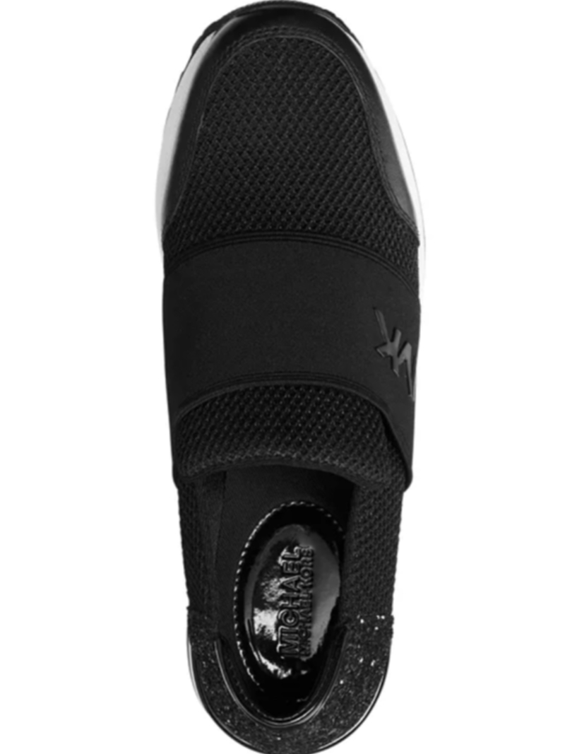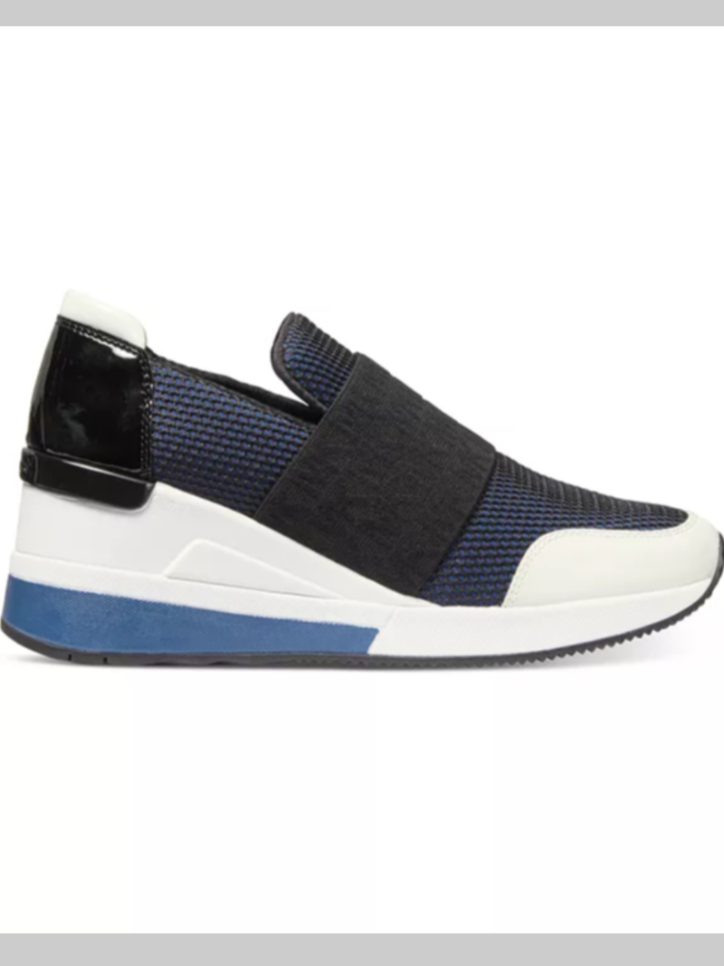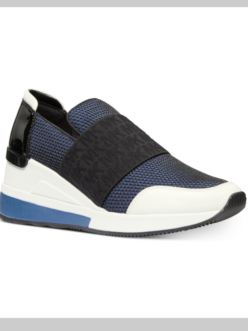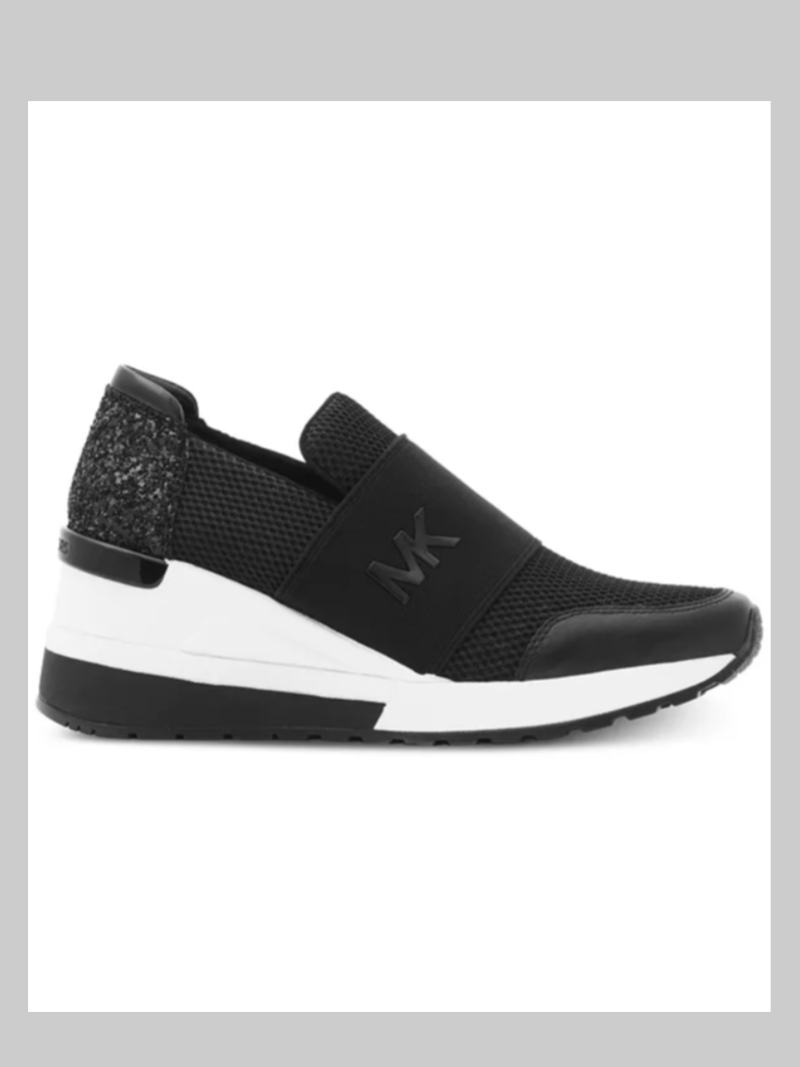 The mixed media design of the Felix trainers by MICHAEL Michael Kors combines glitter and mesh with a sporty platform wedge heel in stylish athleisure fashion.