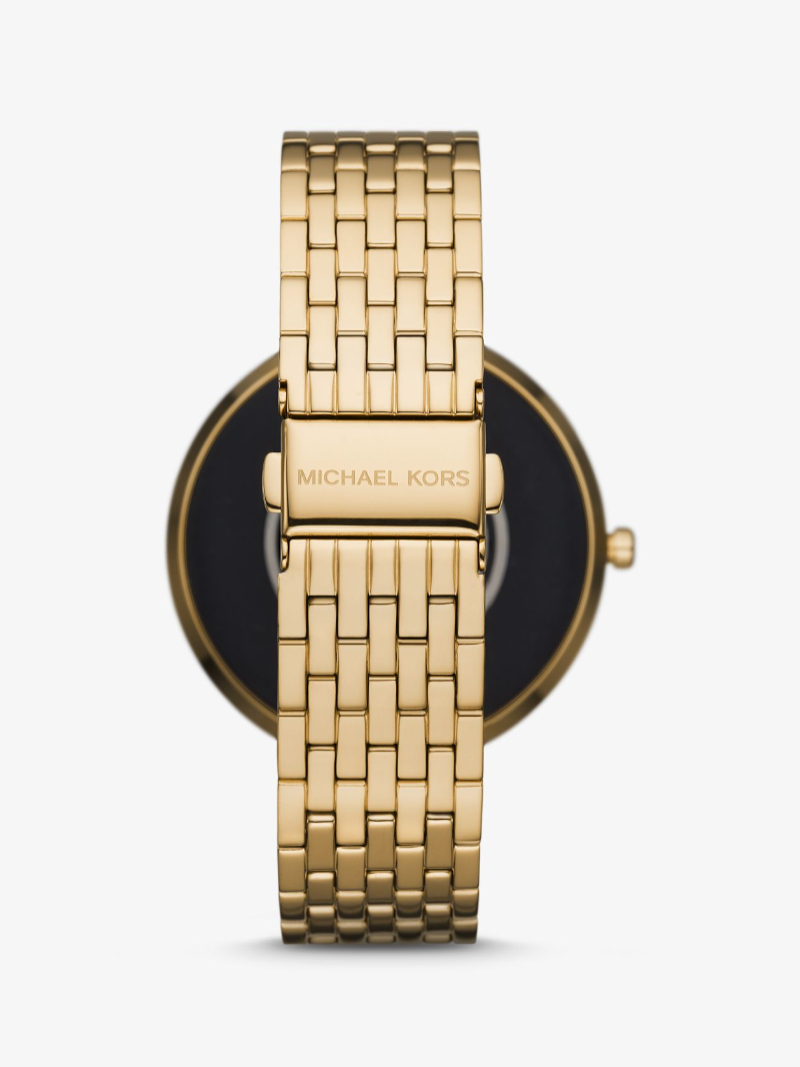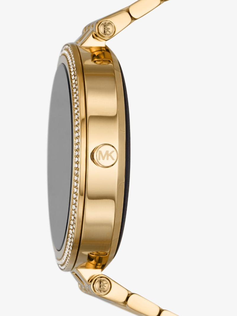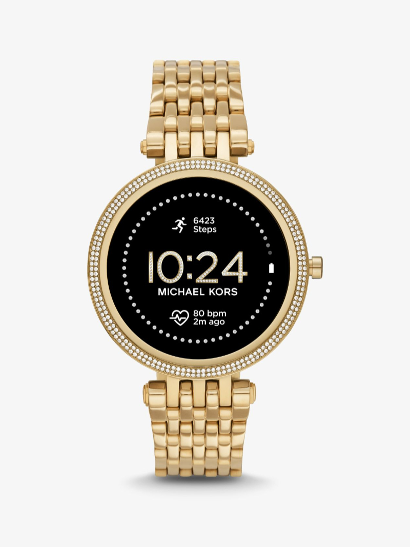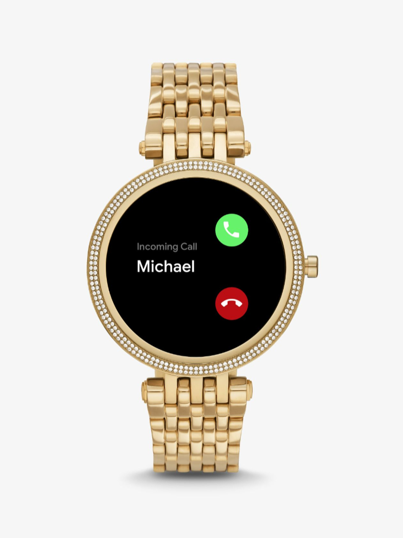 A little glam, a little next-generation technology—our pavé-accented Gen 5E Darci smartwatch delivers refined style for everyday wear. Crafted from gold-tone stainless steel and powered by Wear OS by Google™, this timepiece features a built-in speaker for Bluetooth-enabled calling, estimated heart-rate tracking, payment methods and more to support your daily wellness needs.