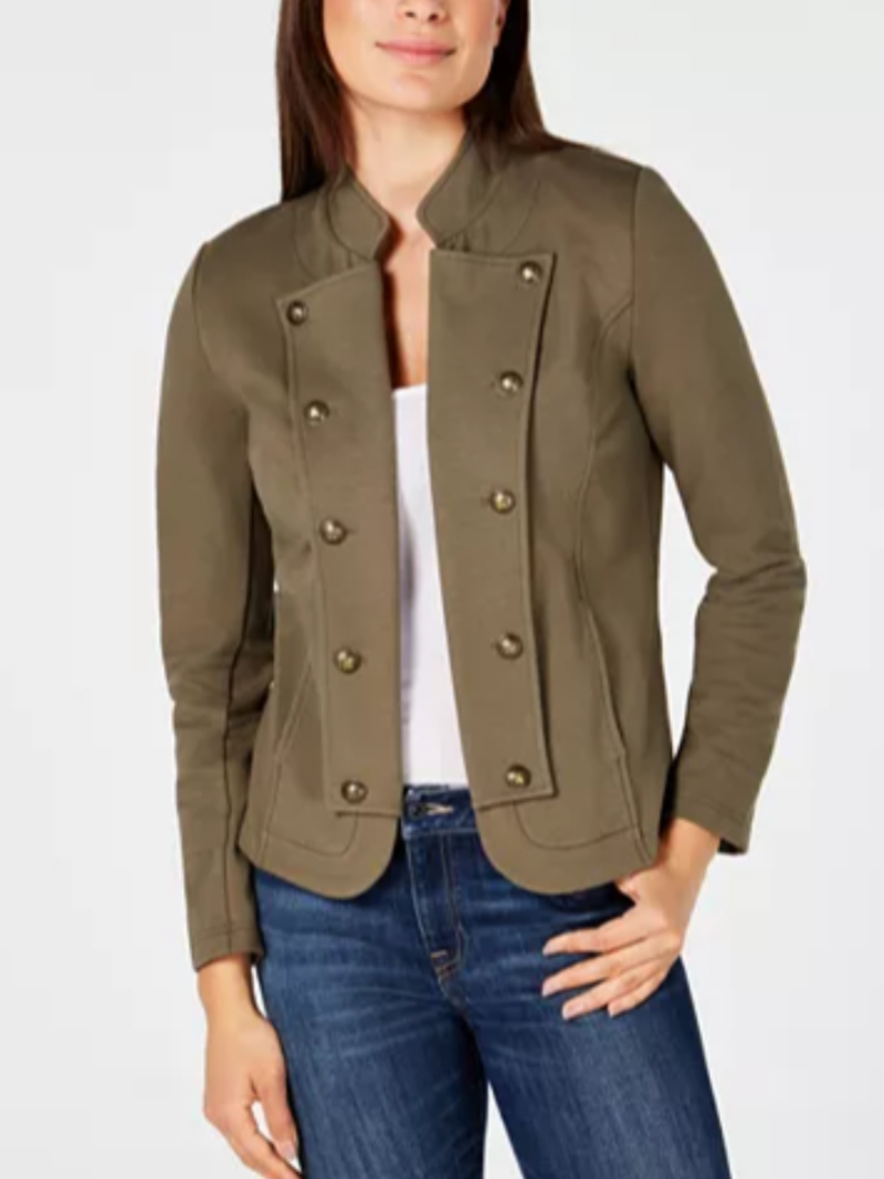 Tommy Hilfiger keeps you in fashion step with this button-detailed military band jacket that's an edgier alternative to a blazer.