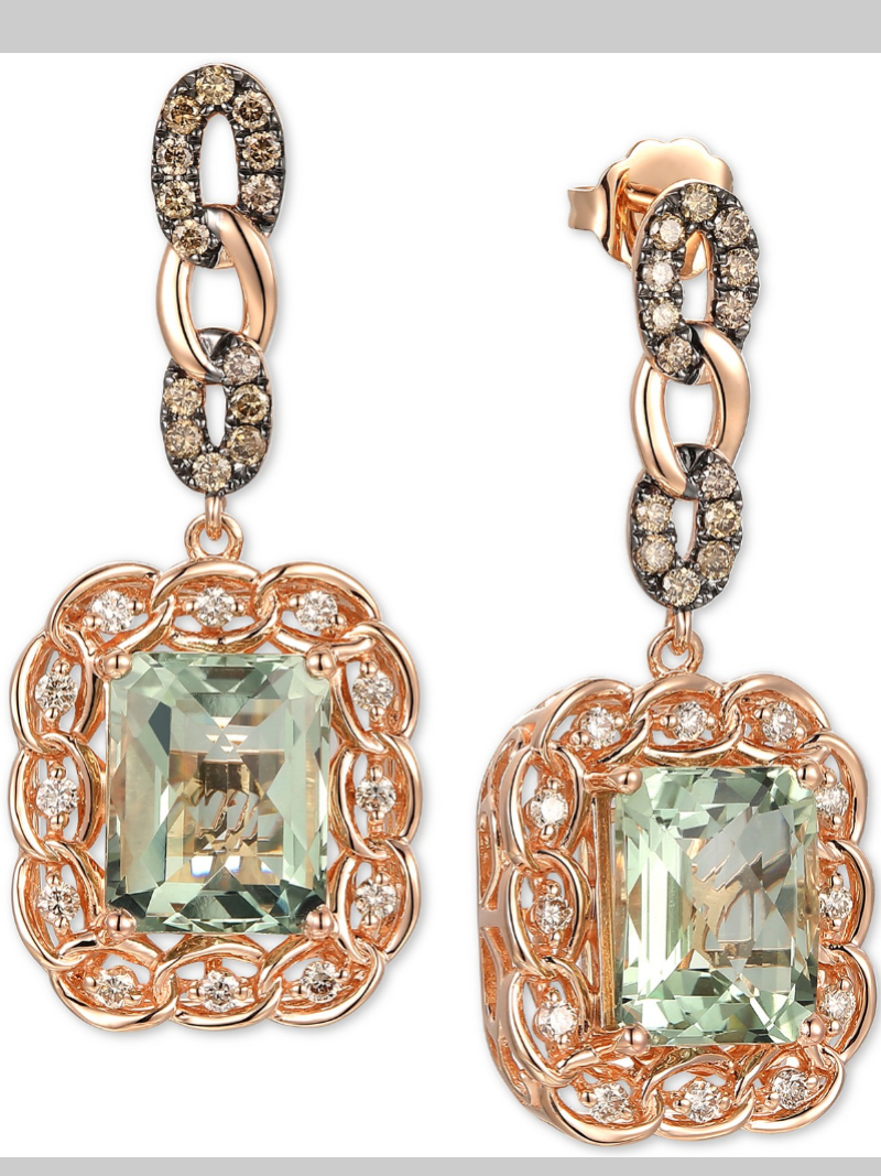 Le Vian updates classic drop earrings with interlocking chain link detail in these Mint Julep Quartz™ drop earrings set with a stunning blend of Nude Diamonds™ and Chocolate Diamonds®.