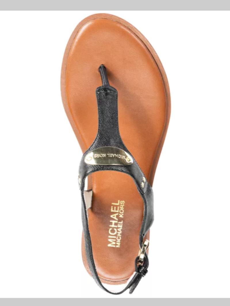 No matter what you're wearing, the MK Plate Thong Sandals by MICHAEL Michael Kors will fit right in--and they come in multiple colors so you can wear a pair every day of the week! The metallic plate on the front adds a touch of grown-up glamour to a fun, old-school style.