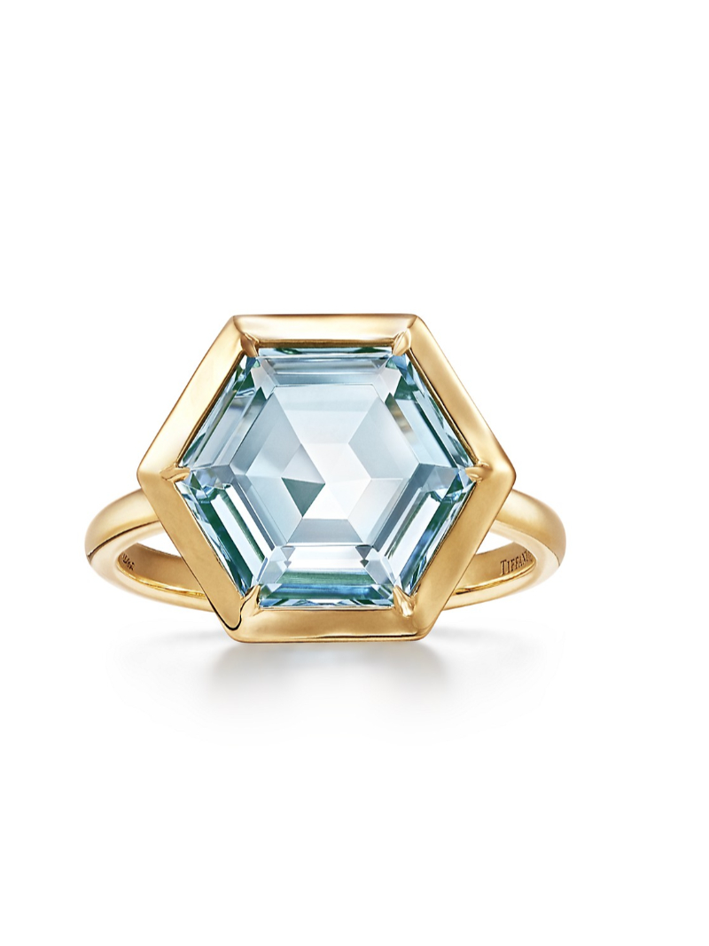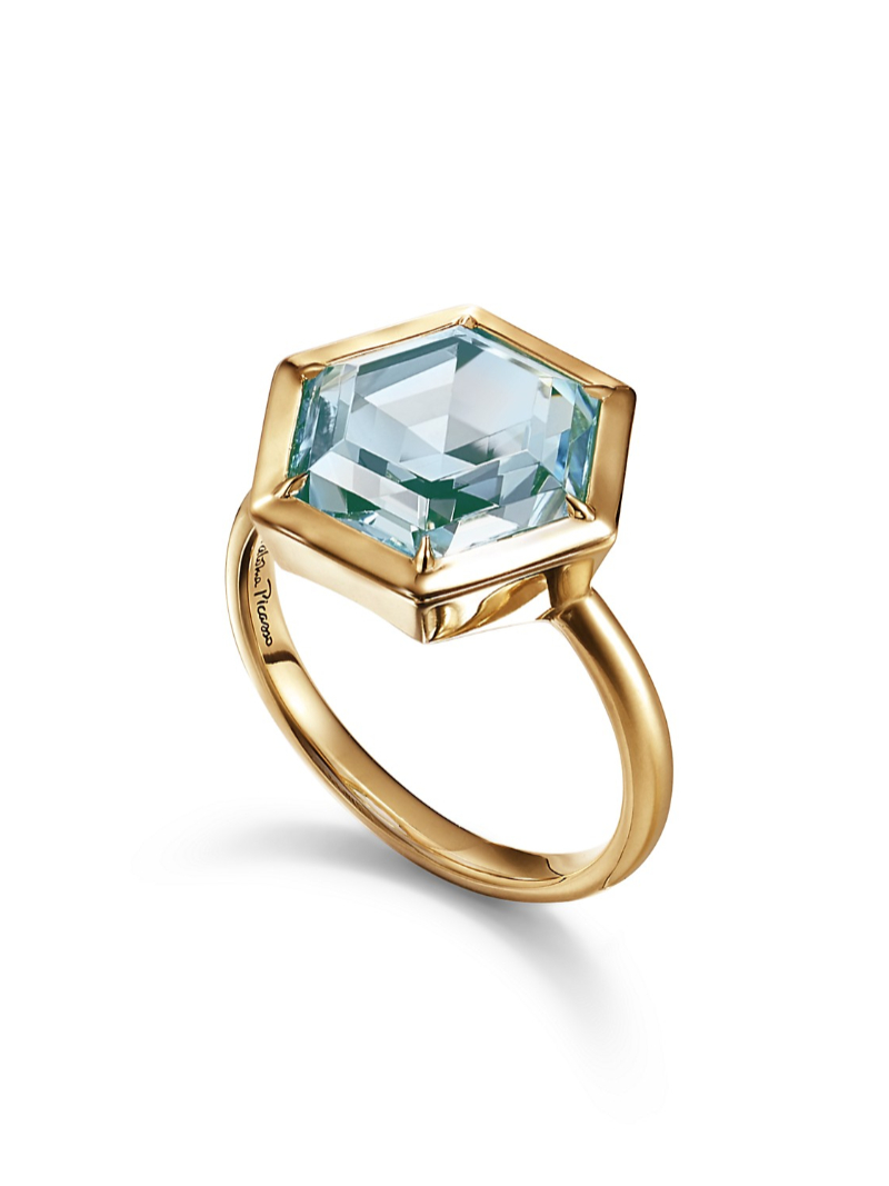 The Paloma's Studio collection celebrates the designer’s love of exuberant color combinations and bold design. This hexagon ring features a custom-cut blue topaz framed in an 18k gold setting. Stack this ring with other Paloma's Studio rings for a unique look that's all your own.