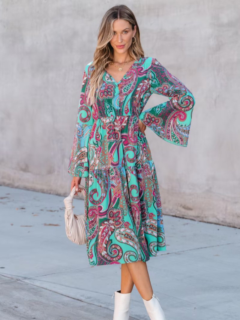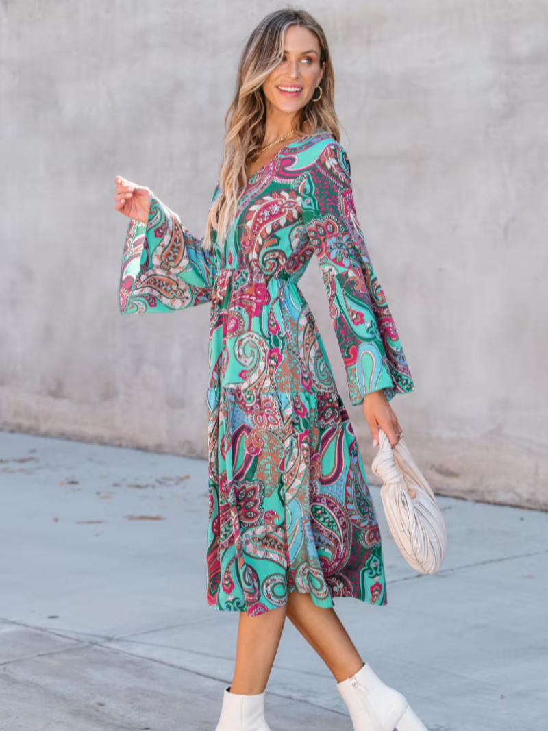 Tommy Hilfiger's versatile a-line dress is a polished pick any day of the week, designed with 3/4-length bell sleeves for a retro-inspired finish.