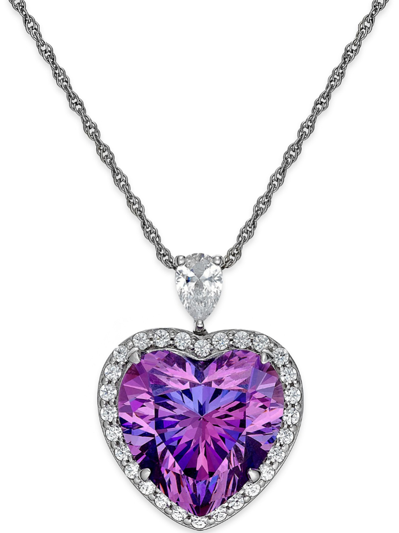 You'll have your heart set on this glamorous necklace, which features briolette-cut purple Swarovski zirconia framed with round-cut clear Swarovski zirconias.