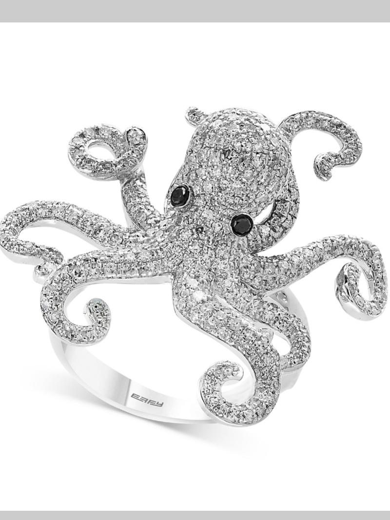 EFFY brings you eight times the style with the deep sea dazzle of this round-shape diamond octopus ring designed in 14k white gold with round-shape black diamond eyes.