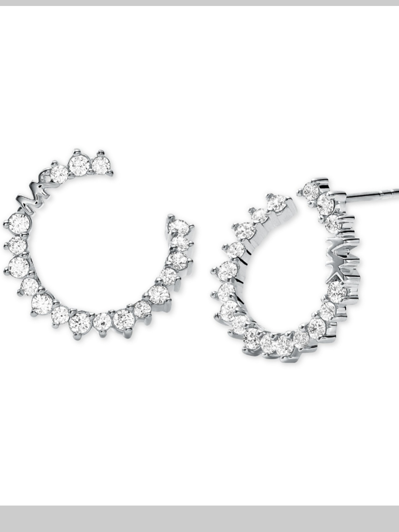Sterling Silver Pavé Front-Facing Hoop Earrings