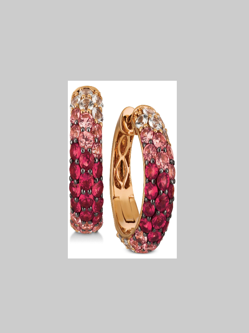Strawberry Layer Cake Multi-Gemstone Ombré Hoop Earrings (4-1/5 ct. t.w.) in 14k Rose Gold