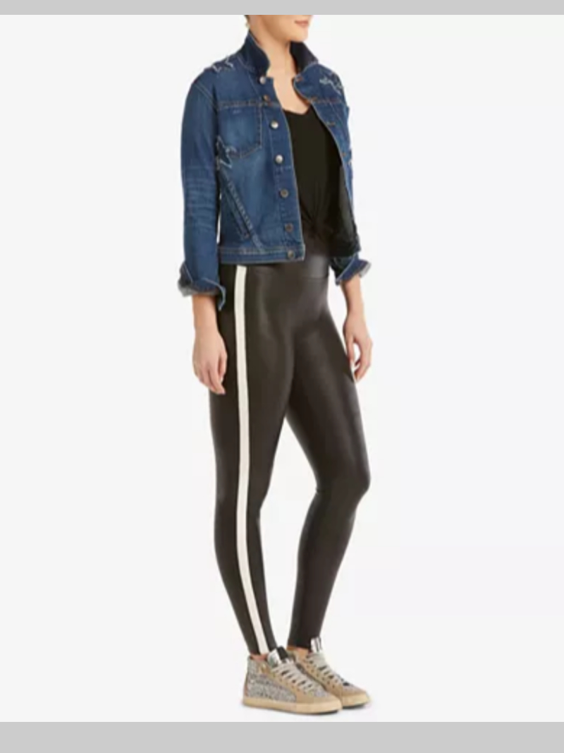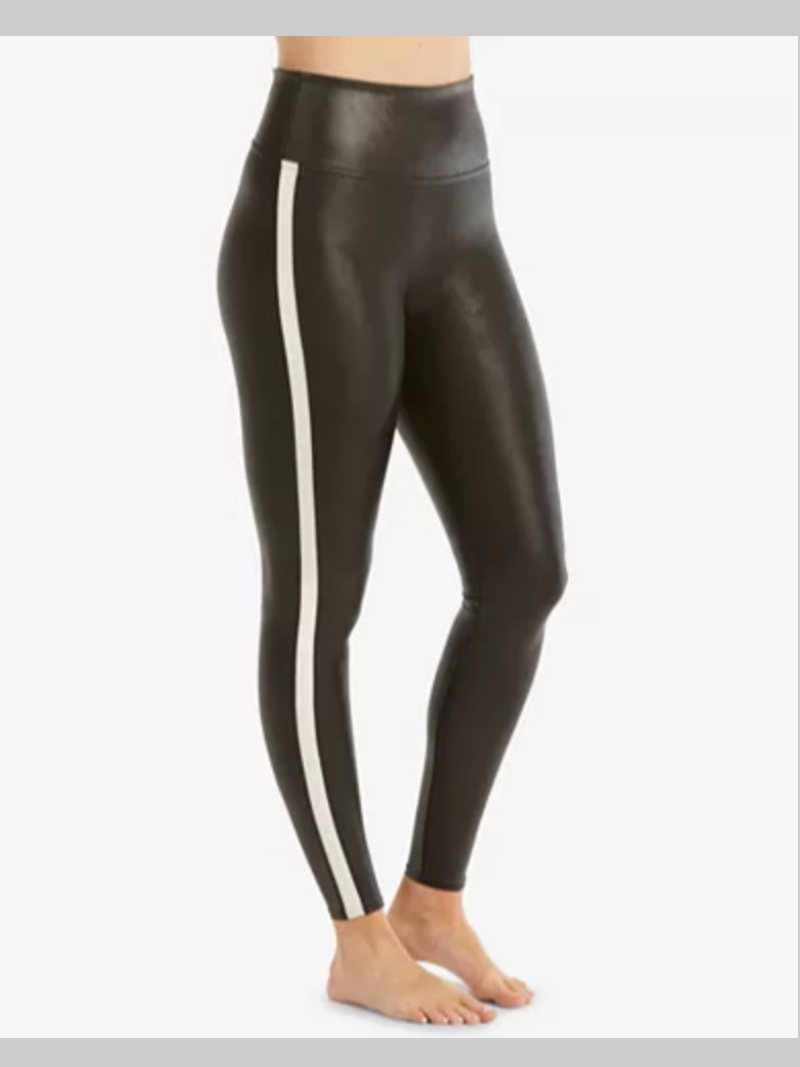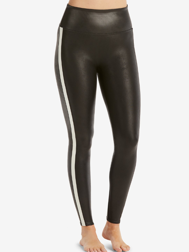 SPANX's tuxedo-stripe faux-leather leggings are a sleek go-to when you're getting ready to go out. Designed with a signature Power Waistband to keep you feeling comfortable and looking sleek.