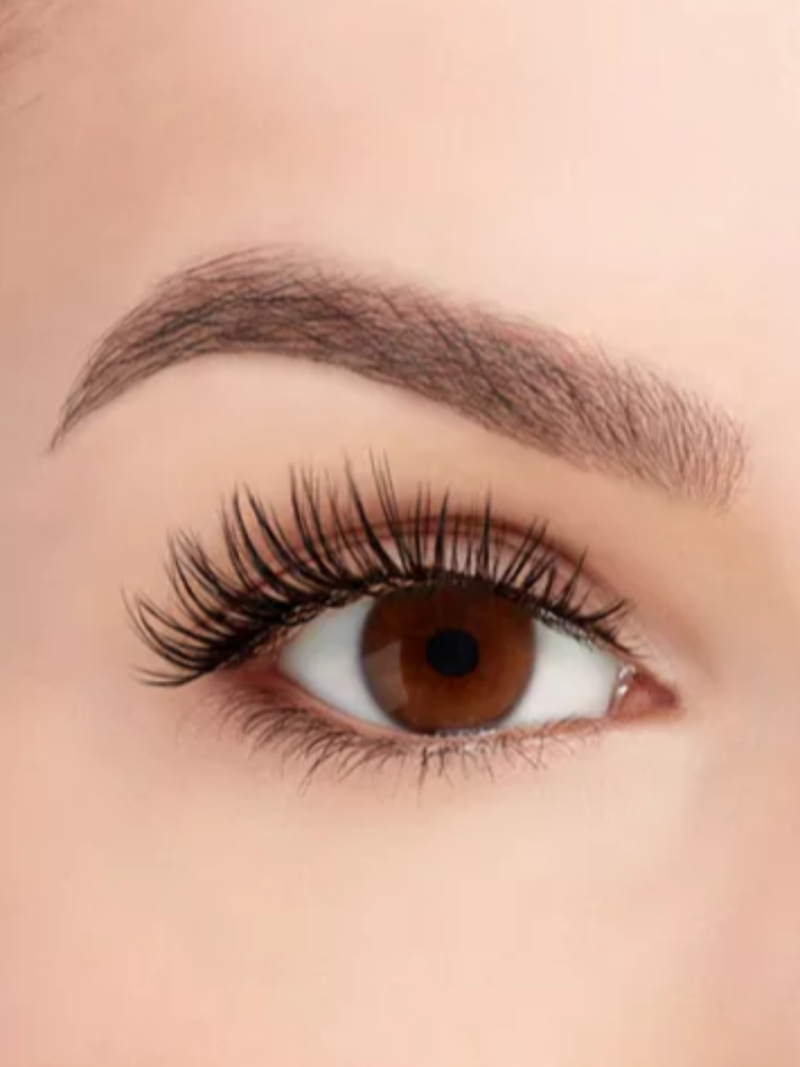 Rounded lash style; elongated in the center with shorter inner and outer corners