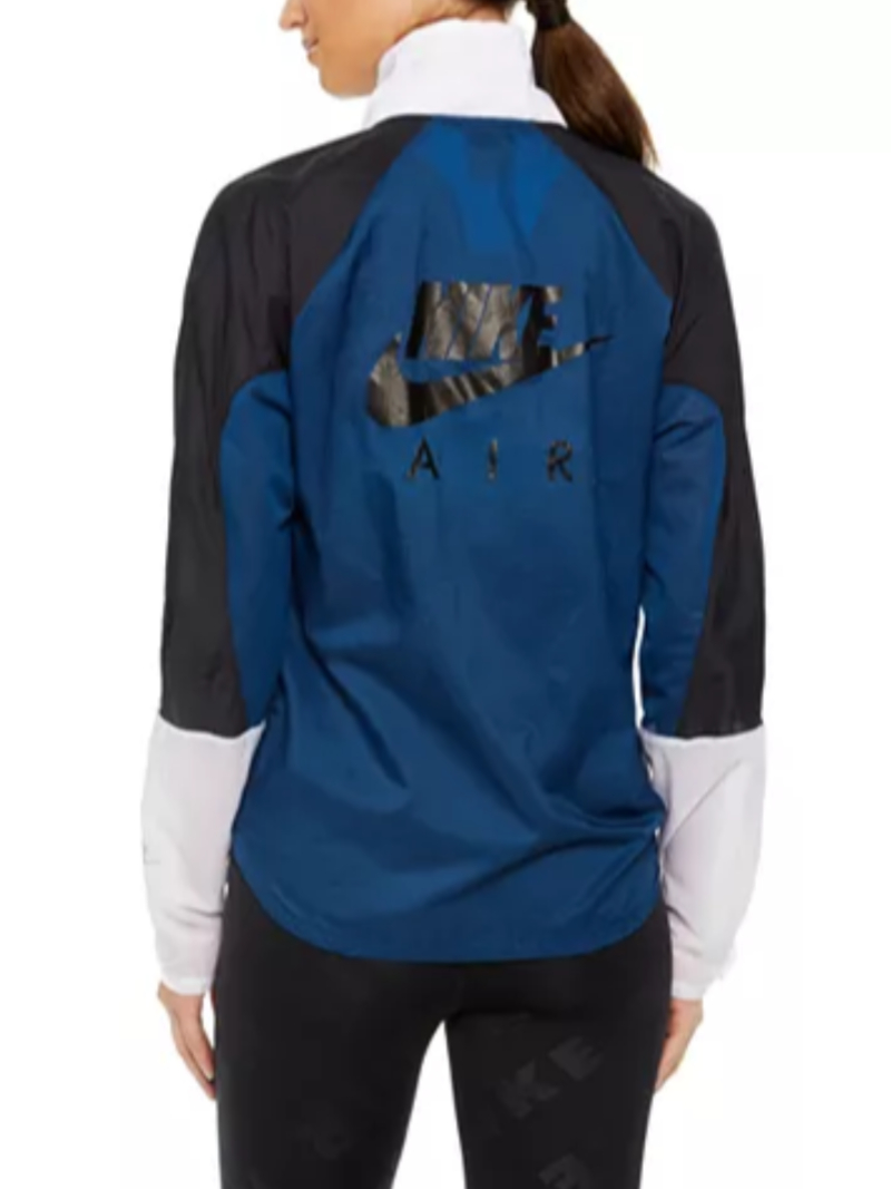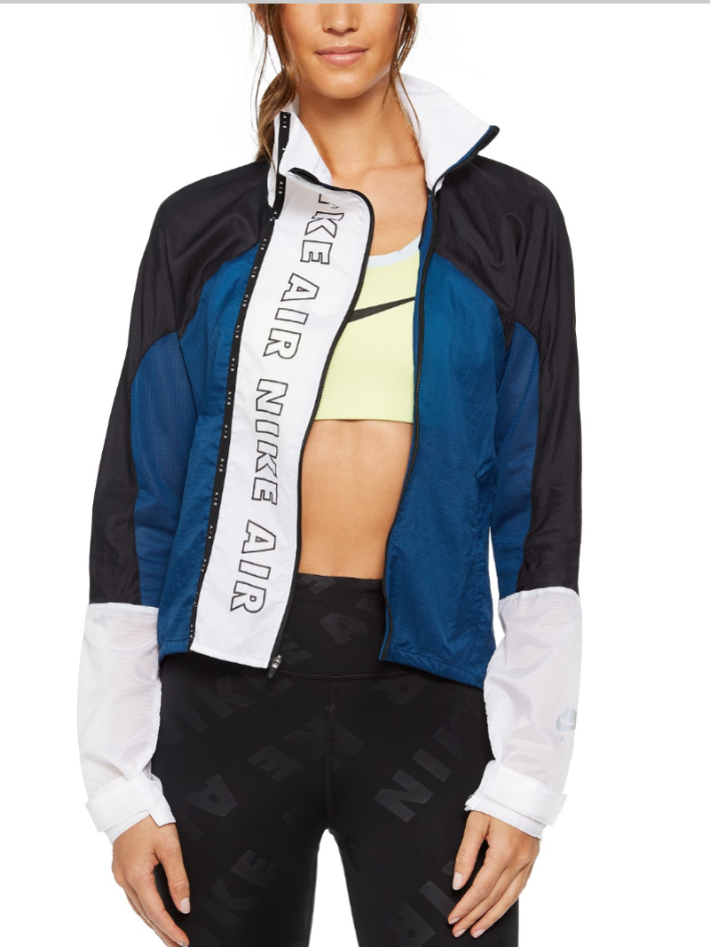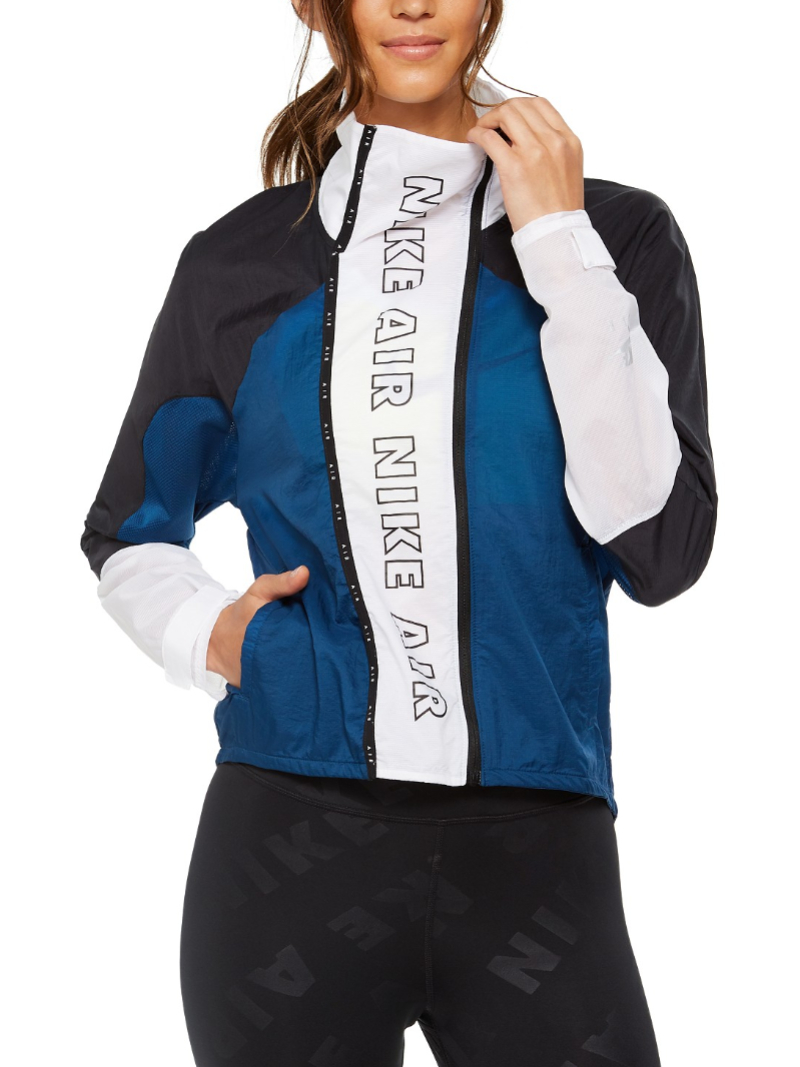 You're off and running regardless of the weather in this Nike Air jacket. It's water-repellent, with breathable mesh under the arms for cooling airflow.