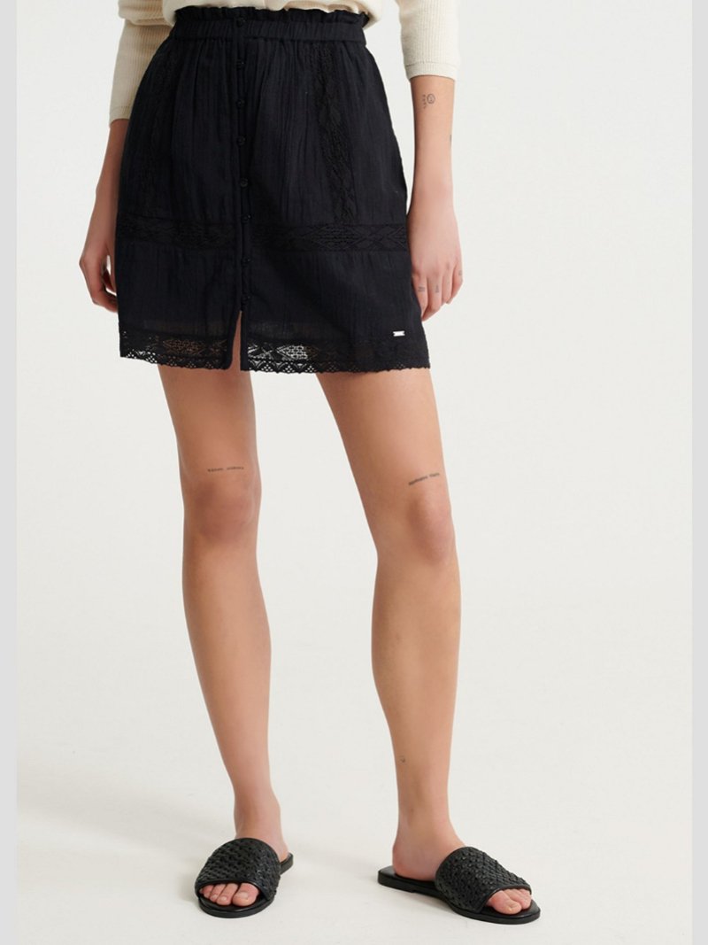 Nothing says summer like a cute flowy skirt. With the Ellison textured lace skirt you get a combination of sheer fabric with an all over print, and elegant lace detailing.