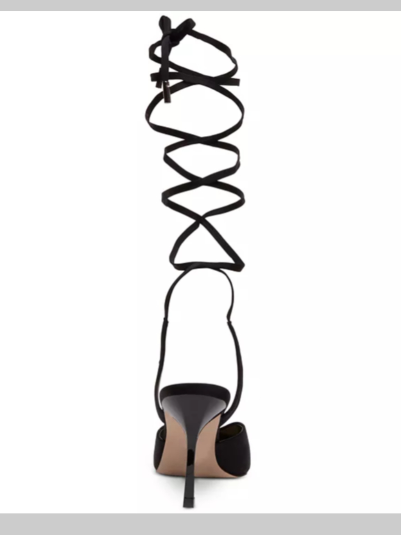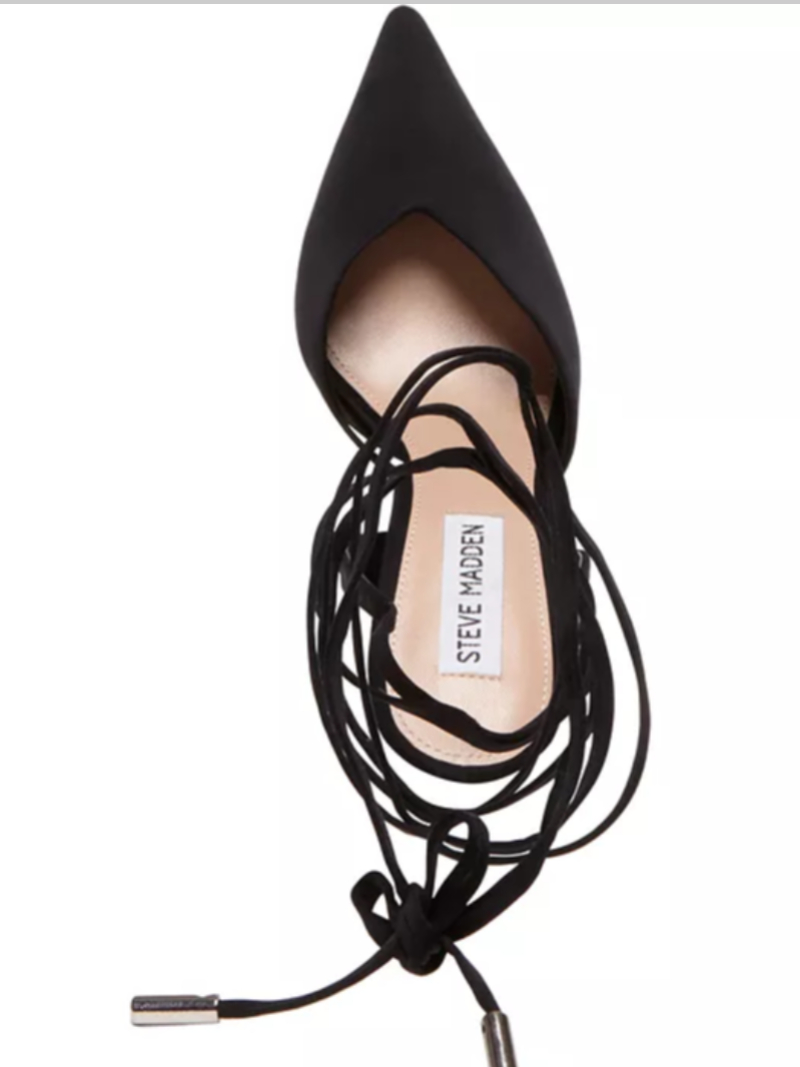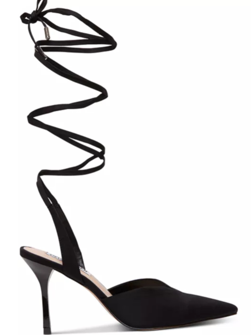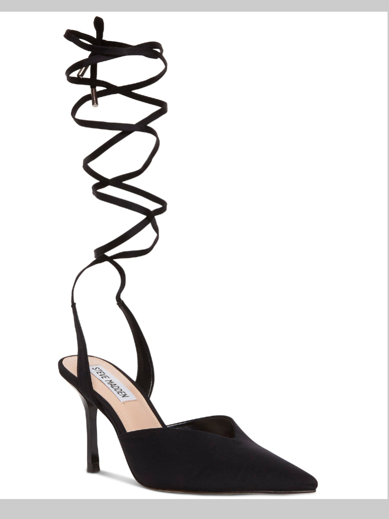 Complete dressy looks with the striking elegance of Steve Madden's Mari pumps where a wrapping ankle-tie design lends sophisticated height to the pointed stiletto profile.