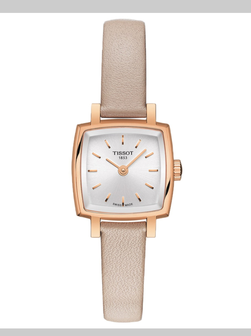 Created as a tribute to Tissot's history of petite timepieces, this T-Lady Lovely watch features a shapely case and romantically colored leather. Style #T0581093603100
