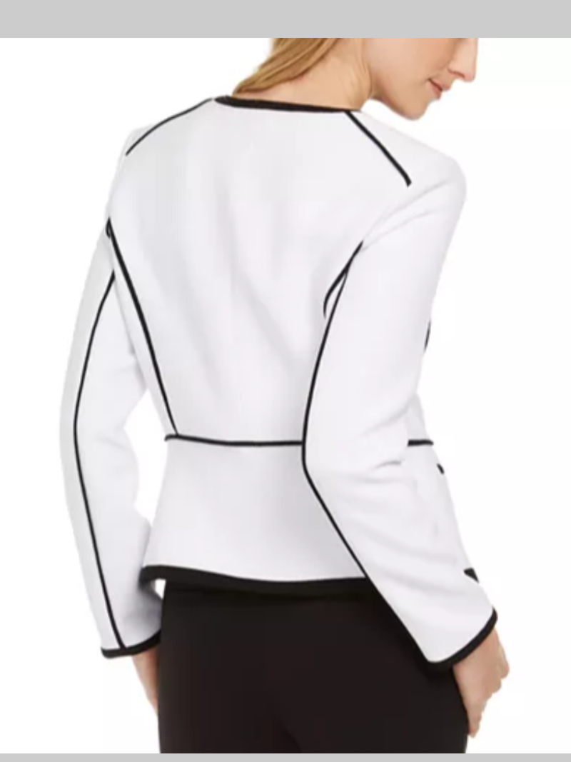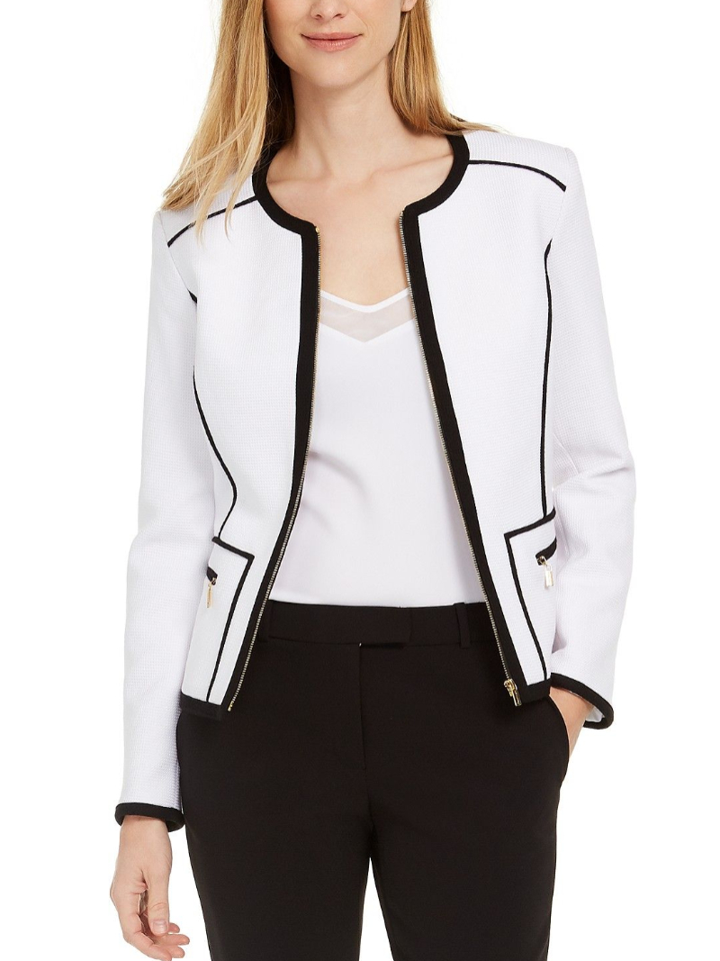 Define your style with Calvin Klein's piqué jacket. The piped detail throughout adds an elegant design that is sure to make a statement.